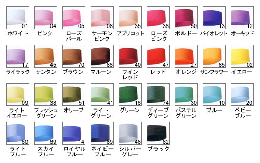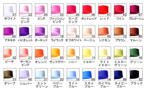 色:#02イエロー、#04ピンク、#10ブルー、#13バイオレット、#14ロイヤルブルー、#16グリーン、#17ライラック、#36ローズピンク、#38フレッシュグリーン、#40ワインレッド、#47レッド